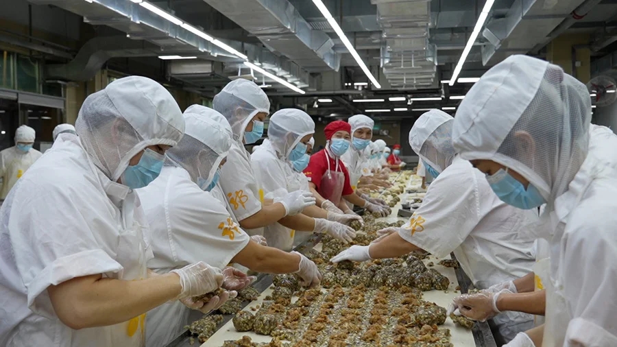 踏進位于惠城區水口街道的郭師傅工業園月餅生產基地,空氣中飄蕩著陣陣濃郁餅香。生產車間內,“全副武裝”的工作人員忙著包餅皮、揉餡等。不同餡料、口味的月餅,經過烤制香氣四溢,很快將銷往惠州乃至全國各地和海外市場。