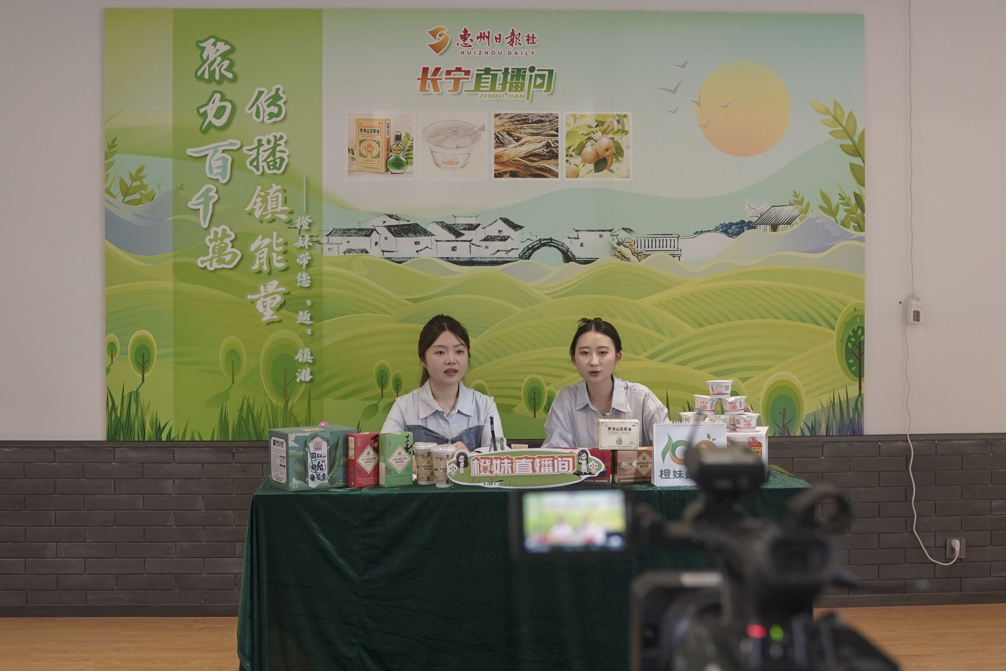 惠州日報社首個“鎮直播間”長寧直播間開播現場。惠州日報記者陳濤 湯渝杭 攝
