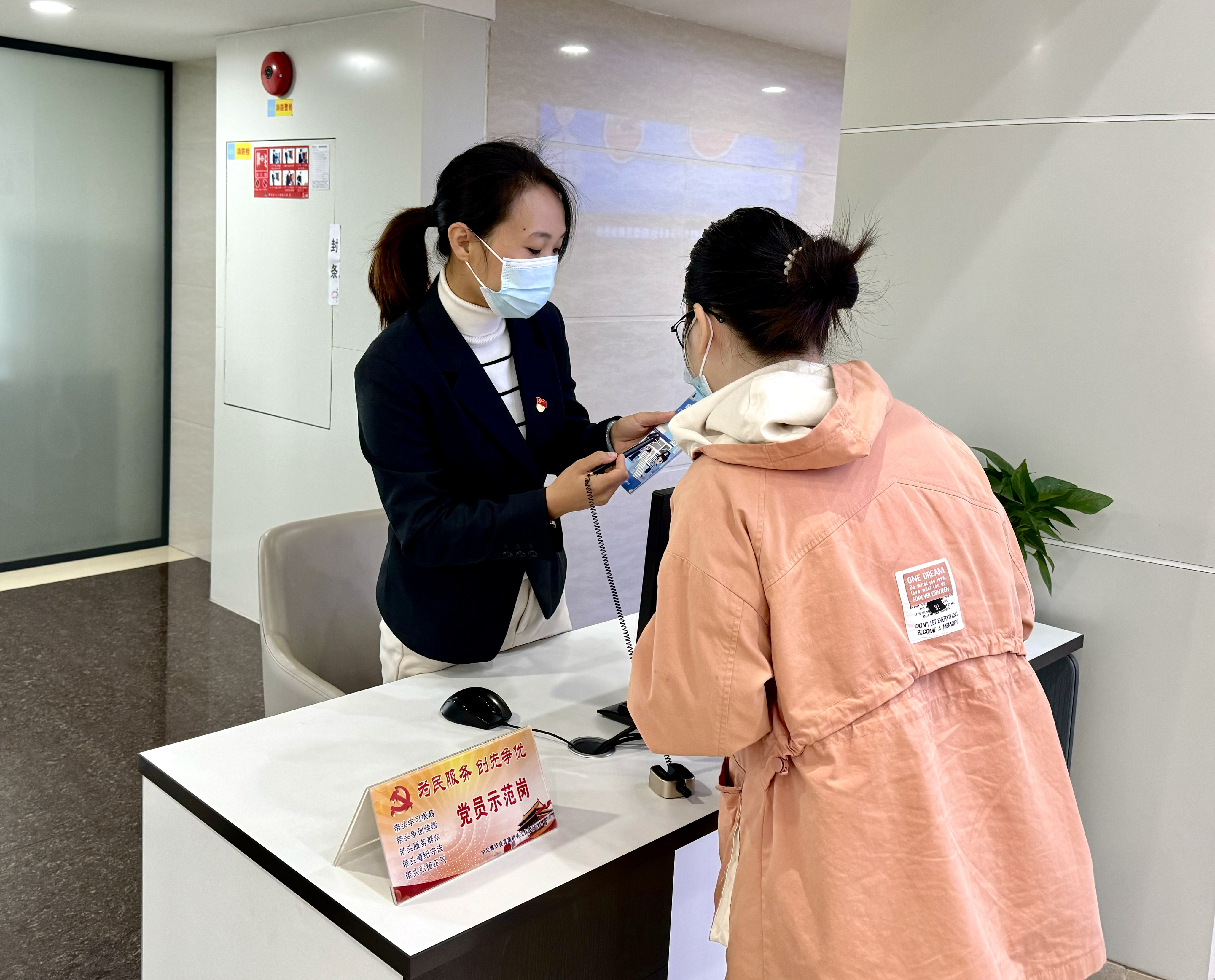 縣政務服務大廳設置黨員示范崗,黨員亮身份服務群眾。