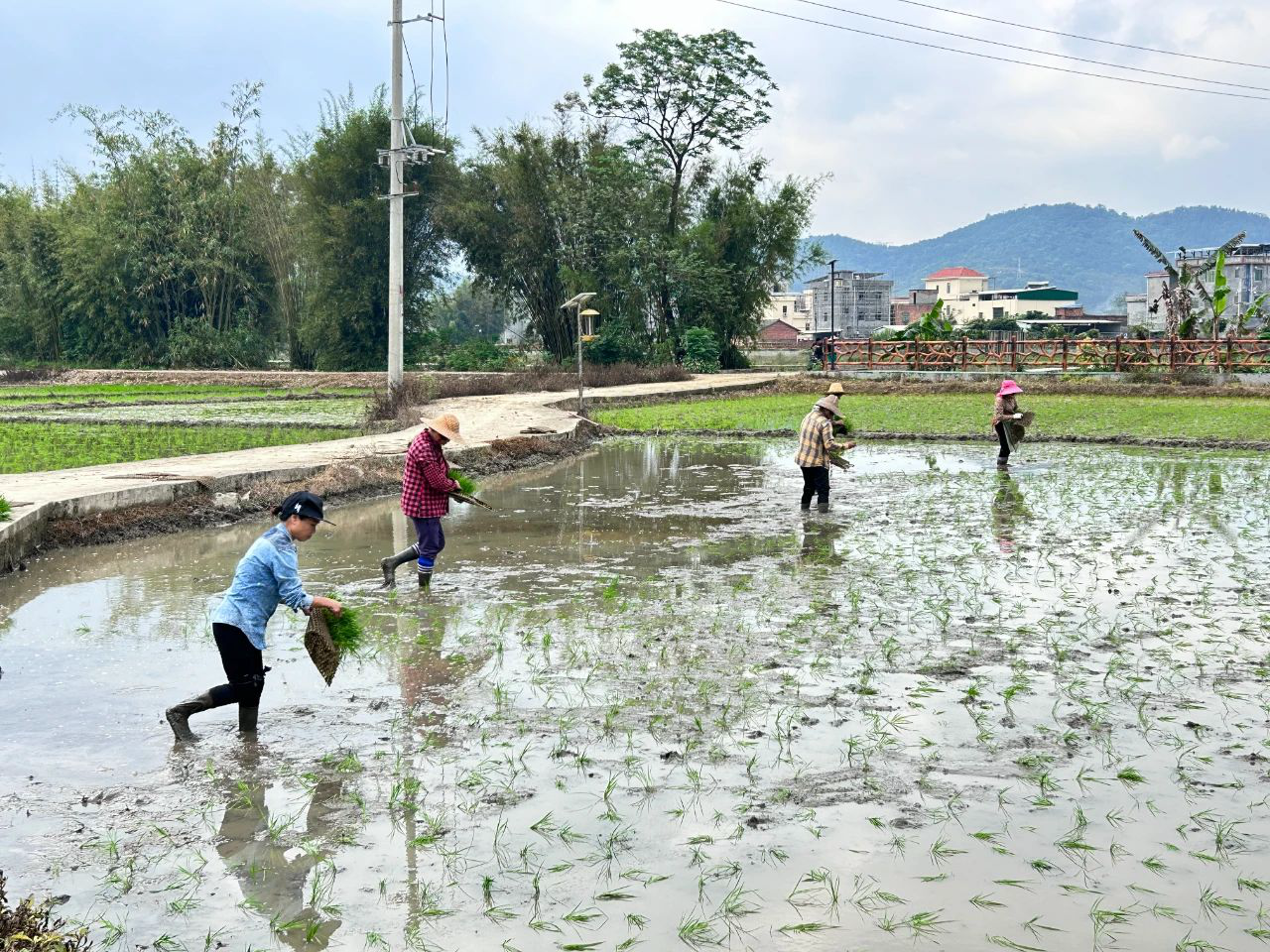農民在插秧。 惠州日報記者黃宇翔 通訊員龍融心 攝