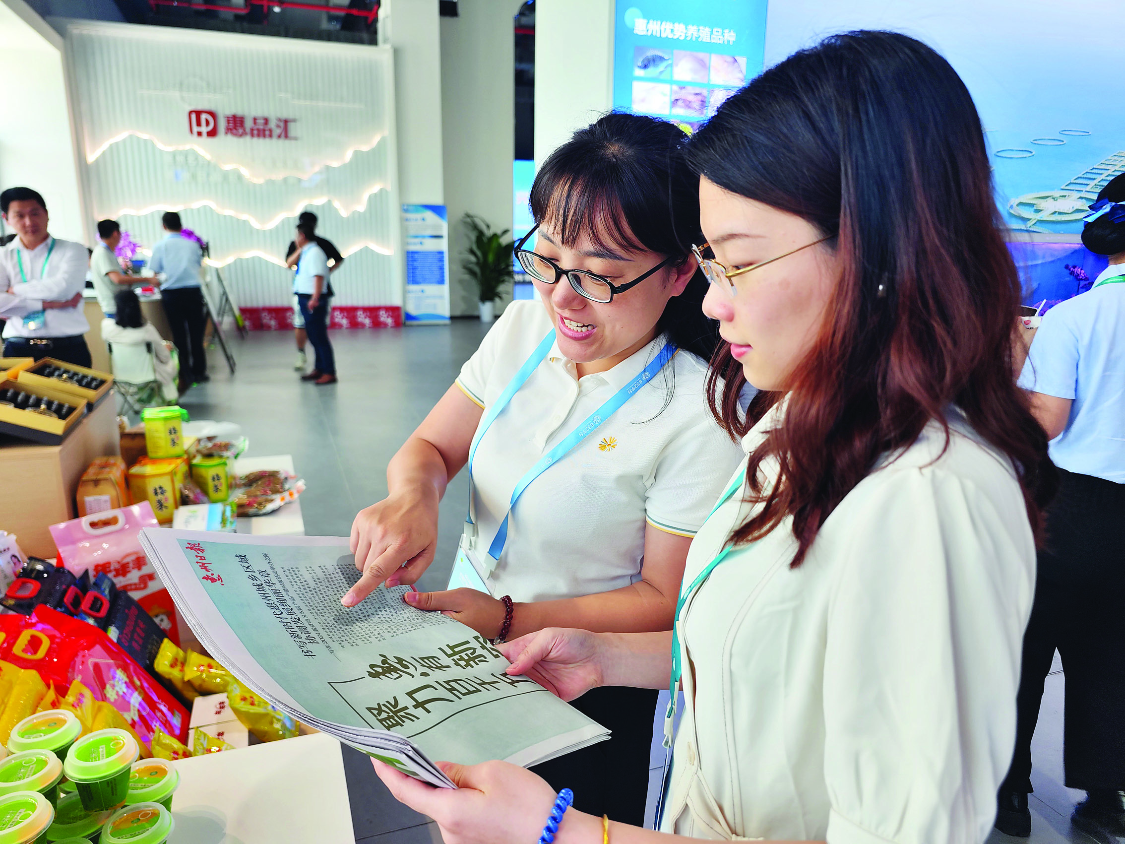 現場商家正在翻閱惠州日報特刊。惠州日報記者黃鑫威 攝