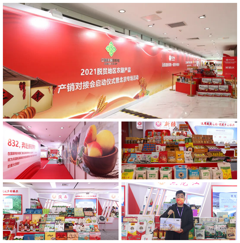 此次產銷對接會采取線下+線上相結合方式同步進行。在3天的時間里,線下會場匯聚了來自832個脫貧縣的1300多家供應商,帶來2萬多款脫貧地區土特產,現場和意向訂單金額超過1億元。線上在“832平臺”(脫貧地區農副產品網絡銷售平臺)設立參展專區,主要包括特色專題線上展、援疆援藏線上展、特色商品線上展、區域服務中心、供需對接大廳等五大版塊內容。
