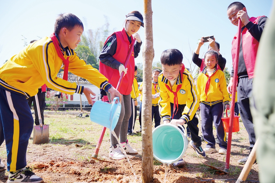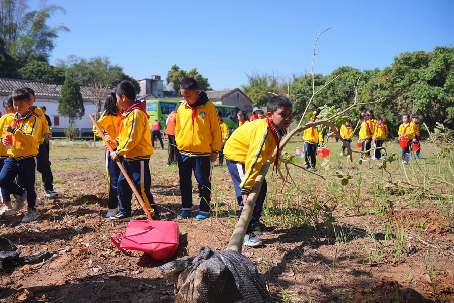“植樹不僅能提高我們的動手能力,還能保護環境。”來自東澳小學的學生張美琪是第一次參加植樹活動。現場,她給樹苗澆水。她說,期待能參加更多的環保公益活動。
