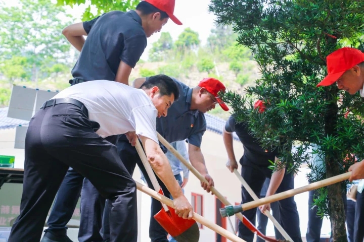 活動現場,大家團結協作、干勁十足,揮鍬鏟土、扶苗填坑、提桶澆水,種下“植物界的大熊貓”之稱的華蓋木、“木蘭科木蓮屬中的佼佼者”之稱的亮葉木蓮、“植物抗生素”之稱的猴耳環,以及望天樹、桂花等苗木400多株。