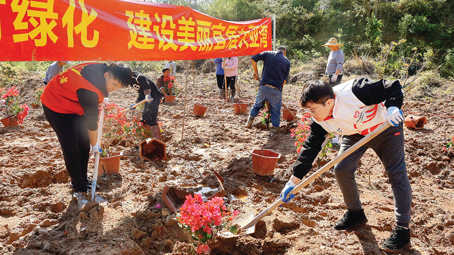 在石化區北面祼露山體植樹點,參加植樹的區級林長、區全面推行林長制工作領導小組成員單位、林業和生態修復專家、社會各界代表組成的志愿者隊伍,揮鍬鏟土、提水灌溉,精心栽種下一株株苗木。經過大家的努力勞作,一棵棵香樟、映山紅、野牡丹等新栽苗木迎風挺立,山林面貌煥然一新,展現勃勃生機,為初春的大亞灣增添一抺新綠。
