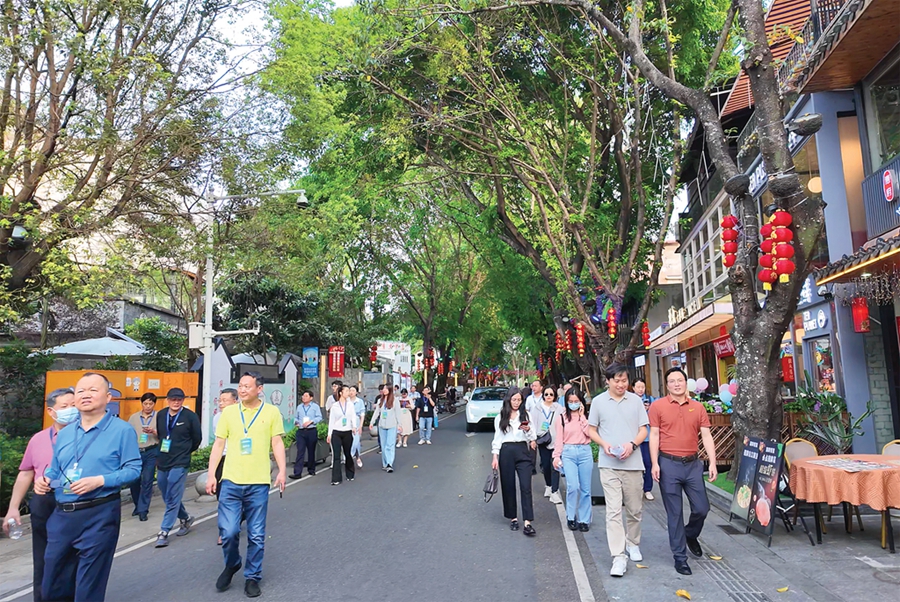 沿著西湖邊行走,便來到有著“一街十巷”格局的祝屋巷。聽聞祝枝山及其后人曾在此筑屋而居因此得名后,大家都饒有興致地邊觀光、邊詢問,意欲進一步領略這一省級旅游休閑街區的魅力。