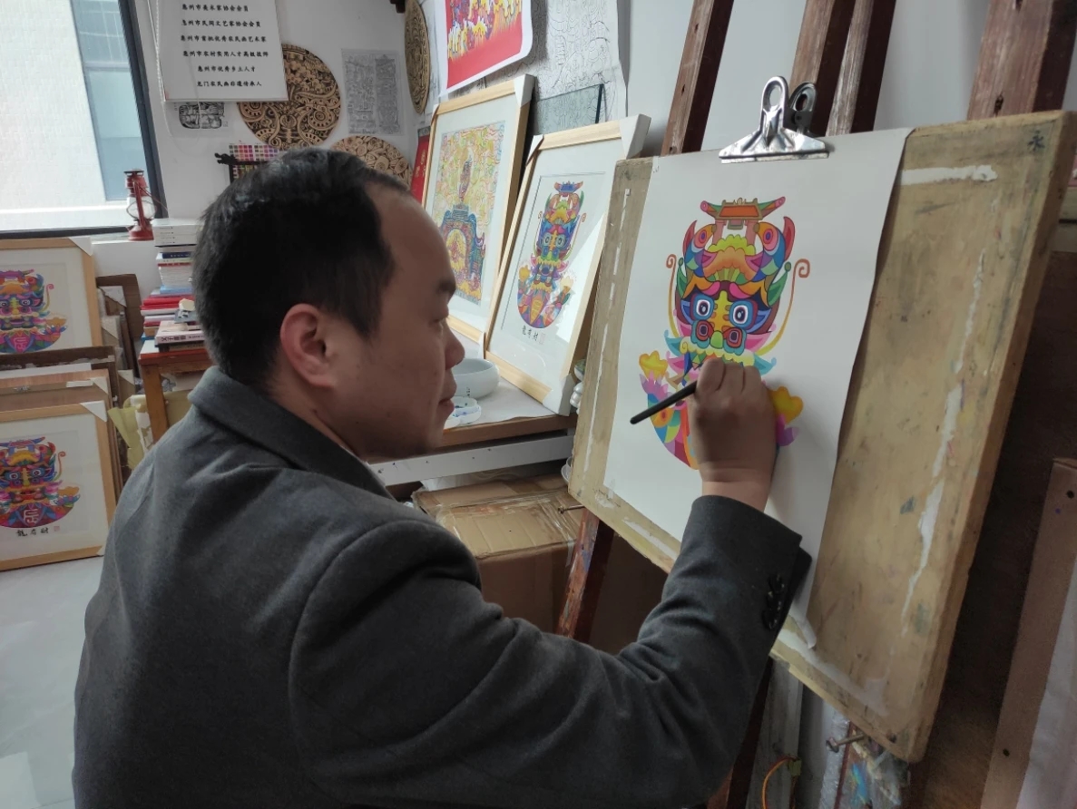 近期,龍門農民畫協會會長、85后畫家鐘永廉創作了《飛龍呈祥迎新歲》系列作品,以龍門農民畫的獨特視角展現龍圖騰,以鄉土藝術描繪魚躍龍門的魅力。