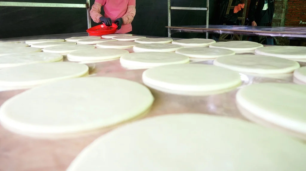 “一般我們到年十八就會開始做,一直做到年廿八。等到春節走親訪友,我們就會帶上一對或者兩對,搭配幾顆橘子作為伴手禮,好看又體面,深受大家喜愛!睆堖M金說,臨近春節,水糍的訂單明顯增加,他們每天能生產約2000個,并按照2個一對進行售賣。