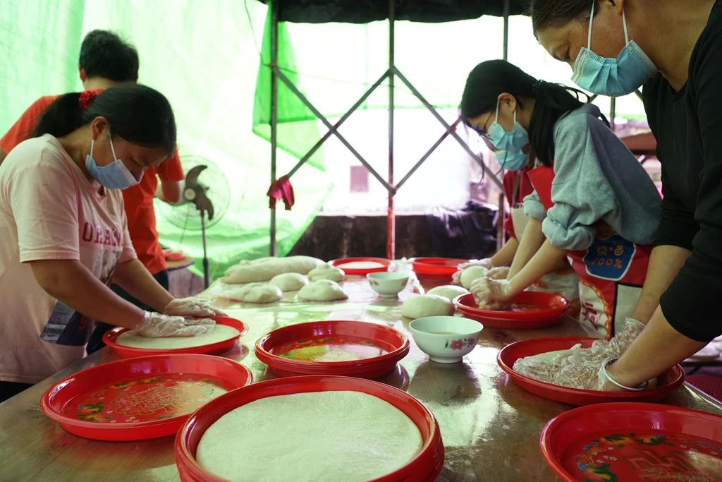 2月1日,石橋村村民歡聚在一起做水糍迎接新年。