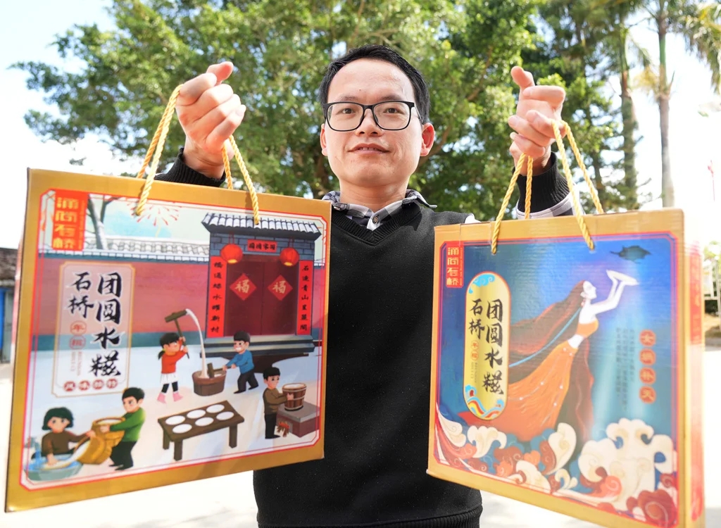 “年糍”,是使用糯米制作而成的,以往制成后需要儲存在清水中,因此又稱為“水糍”。春節期間,有客人來,村民們便會煎炒水糍招待;走親訪友時,他們也會捎上水糍作為伴手禮。因此,每年農歷臘月十八后,石橋村便迎來了水糍的制作和銷售“旺季”。