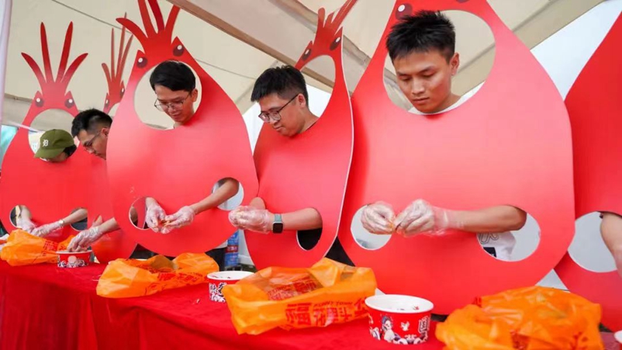 游客參加剝蝦王大賽。
