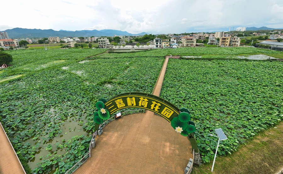 據悉,三嘉村是廣東省“百千萬工程”首批典型村。近年來,三嘉村以“荷”為媒,從發展特色產業、人居環境整治、文明實踐活動等多個方面入手,探索出“荷”美鄉村,花開富農的新路徑。