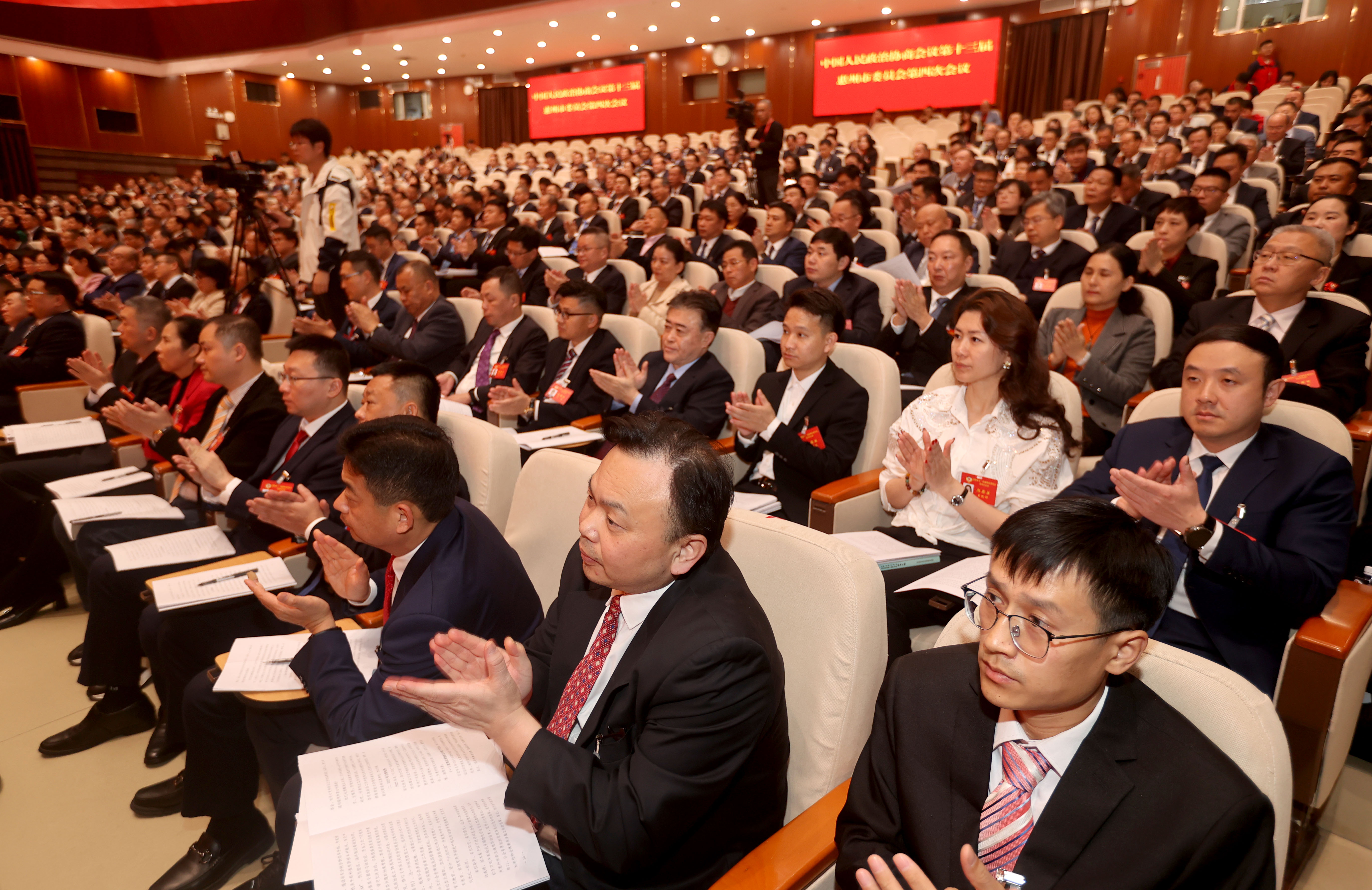 2月18日下午,中國人民政治協商會議第十三屆惠州市委員會第四次會議在市會議中心開幕。 惠州日報記者李松權 楊建業 攝