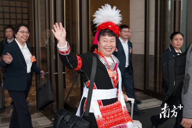3月3日上午,在粵全國人大代表在廣州搭乘飛機啟程赴京,參加即將召開的十四屆全國人大三次會議。