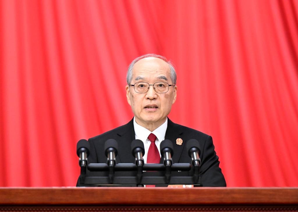 3月8日,十四屆全國人大三次會議在北京人民大會堂舉行第二次全體會議。最高人民法院院長張軍作最高人民法院工作報告。新華社記者 申宏 攝