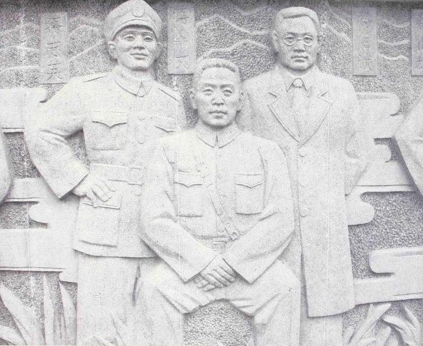 圖為諸暨市浬浦鎮盤山村的抗戰英雄浮雕像,左一為蔣志英(資料照片)。新華社發(諸暨市委宣傳部供圖)