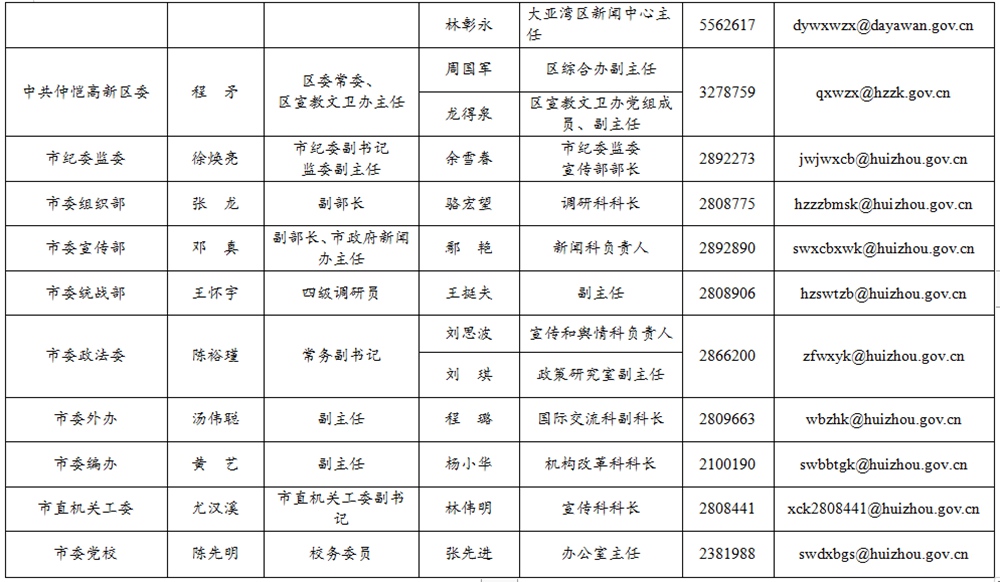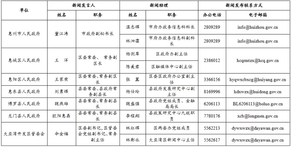 2023年惠州市黨委新聞發(fā)言人和新聞助理名單