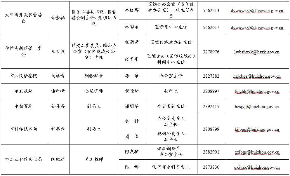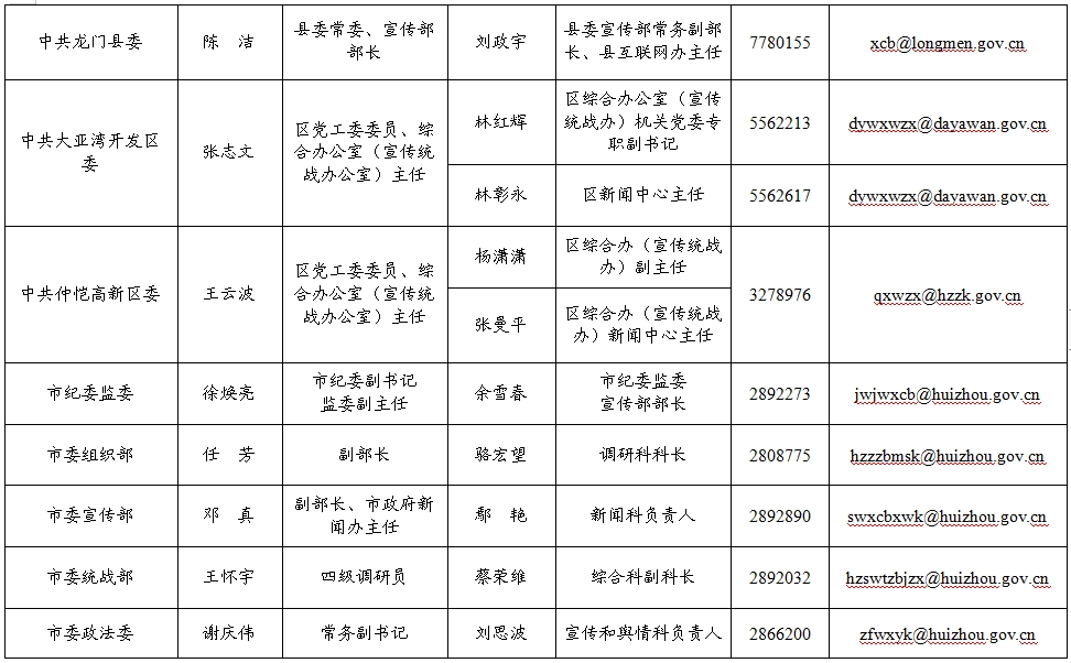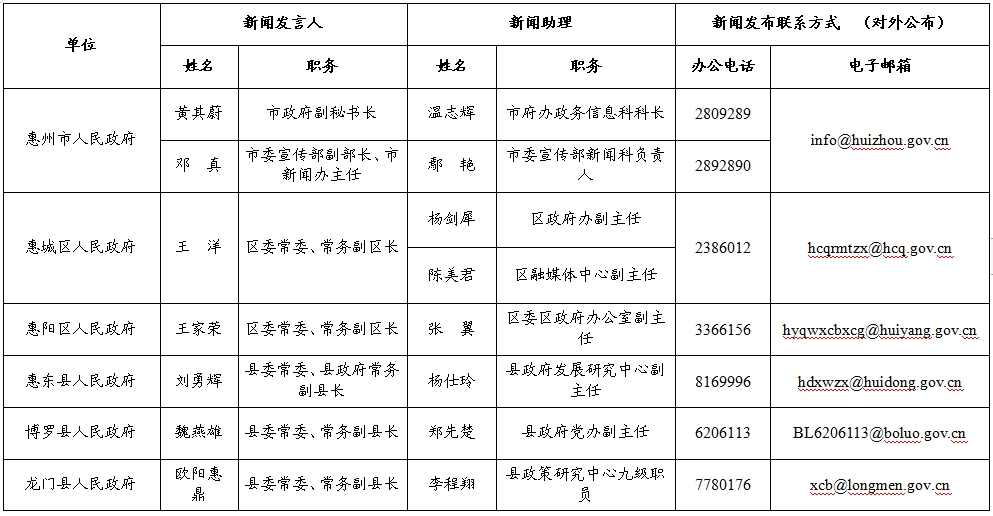 2024年惠州市黨委新聞發言人和新聞助理名單