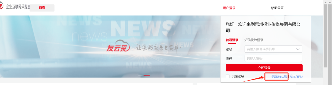 3、按照要求填寫供應商注冊信息、完善資質信息,提交至惠州報業傳媒集團有限公司審核。