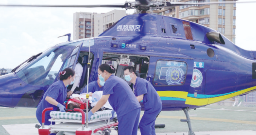 在急救創傷中心樓頂,還有一個24小時直升機停機坪,連接著一部可以直達搶救室的電梯,這是為患者打通的另一條生命通道。目前,依托硬件配備的“硬核武器”和軟件設施的“最強大腦”,該院構建了涵蓋院前急救、途中診斷、院內搶救、院外聯動的陸空一體化救治體系。