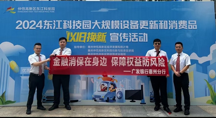 為不斷提升社會公眾金融素養,構建和諧的金融消費環境,廣發銀行惠州分行積極履行社會責任,于5月18日契合東江科技園消費品以舊換新宣傳活動。