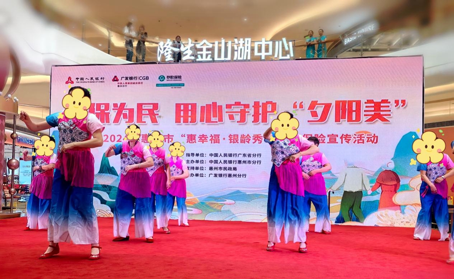 “惠幸福·銀齡秀”比賽熱火朝天,廣發銀行惠州分行成立存款保險宣傳青年志愿服務隊、存款保險黨員宣傳團,巧妙結合比賽場地需求,精心設置存款保險宣傳茶歇點、擺放存款保險政策宣傳易拉寶,并向參賽選手及現場觀眾派發存款保險宣傳資料,宣傳存款保險的意義與作用,讓公眾真正“聽得懂、看得見、問得到”。