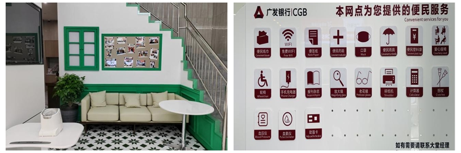 老有所得,適老改造增特色。堅持以人為本,不斷在硬件設(shè)施的功能性、實(shí)用性、針對性上下功夫,一是升級網(wǎng)點(diǎn)設(shè)施,為行動不便的老年人設(shè)置無障礙通道、無障礙衛(wèi)生間,配備輪椅、拐杖、放大鏡、不同度數(shù)老花鏡、血壓血氧計、便民藥箱等適老化便民設(shè)施;二是打造服務(wù)專區(qū),廣泛調(diào)研長者客戶喜聞樂見的專區(qū)物件與配色布局,長者服務(wù)專區(qū)整體為懷舊設(shè)計,通過物件配置與空間改裝形成特色功能區(qū),長者客戶可在長者服務(wù)專區(qū)結(jié)伴閑坐聊天、享受自助閱讀、免費(fèi)測量血壓、瀏覽活動趣聞等,感受到賓至如歸的舒適體驗(yàn)。