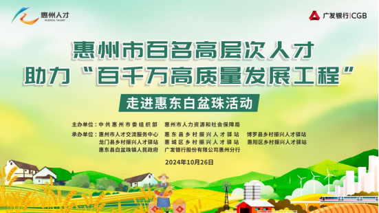 為積極響應(yīng)國家關(guān)于人才強(qiáng)國與鄉(xiāng)村振興的重大戰(zhàn)略部署,10月26日,由中共惠州市委組織部、惠州市人力資源和社會(huì)保障局主辦,惠州市人才交流服務(wù)中心、廣發(fā)銀行惠州分行等單位聯(lián)合承辦的“惠州市百名高層次人才助力‘百千萬工程’——走進(jìn)惠東白盆珠”活動(dòng)順利開展,百名來自惠州不同行業(yè)的高層次人才齊聚一堂,通過“實(shí)地調(diào)研+座談交流”推動(dòng)人才集聚與鄉(xiāng)村振興產(chǎn)業(yè)發(fā)展同頻共振,以“人才引擎”刻畫鄉(xiāng)村振興新篇。