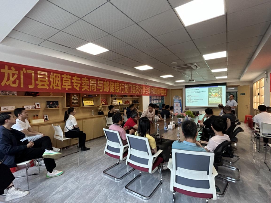 為強化黨建引領業務發展作用,深入推進黨建共建工作向縱深發展,2023年4月21日,郵儲銀行龍門縣支行聯合龍門縣煙草專賣局開展煙草貸業務推介會暨反詐宣講活動。活動在龍門縣煙草專賣局“20支”直營店三樓會議室舉行,龍門縣煙草專賣局市場部負責人、“20支”直營店店長、郵儲銀行龍門縣支行副行長劉惠智以及縣城區域內30多戶煙草零售商戶參加。