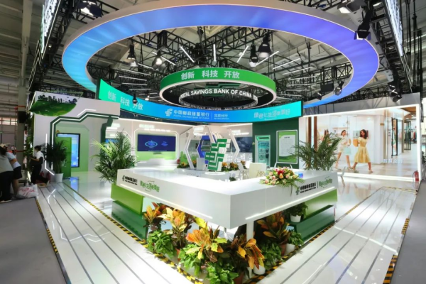 在充滿科技感的北京分行展區(qū),郵儲銀行北京分行以“創(chuàng)新·科技·開放 綠色讓生活更美好”為主題,設(shè)置了“服務(wù)美好生活”“服務(wù)鄉(xiāng)村振興”“服務(wù)實體經(jīng)濟”“科技創(chuàng)新賦能”四大板塊,吸引不少參觀者駐足了解。