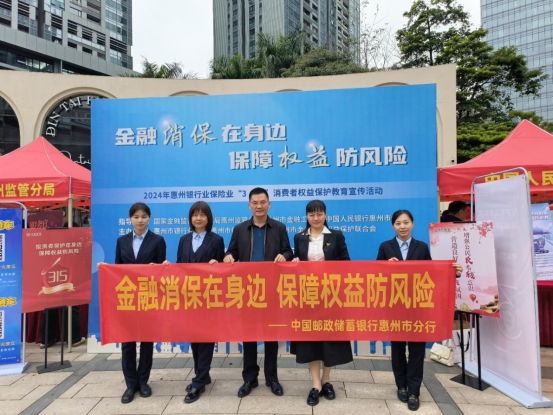 3月15日,中國郵政儲蓄銀行惠州市分行在惠城區江北華貿天地廣場組織開展了2024年“3.15”消費者權益保護教育宣傳活動。