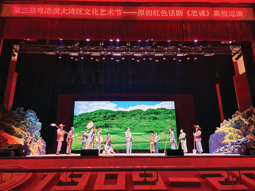 “看完內(nèi)心久久不能平靜,我被他們的革命精神深深感染了!”“整部話劇故事感強(qiáng),脈絡(luò)清晰,跌宕起伏,讓我有一種身臨其境的感覺,仿佛回到了那個(gè)血雨腥風(fēng)的歲月。”9月24~27日,作為第三屆粵港澳大灣區(qū)文化藝術(shù)節(jié)系列活動(dòng)之一,惠州原創(chuàng)紅色話劇《忠誠(chéng)》先后走進(jìn)廣東工業(yè)大學(xué)、華南農(nóng)業(yè)大學(xué)、中山大學(xué)、華南理工大學(xué),用生動(dòng)的劇情、沉浸式的演繹為學(xué)子們送上一堂生動(dòng)的紅色教育課。