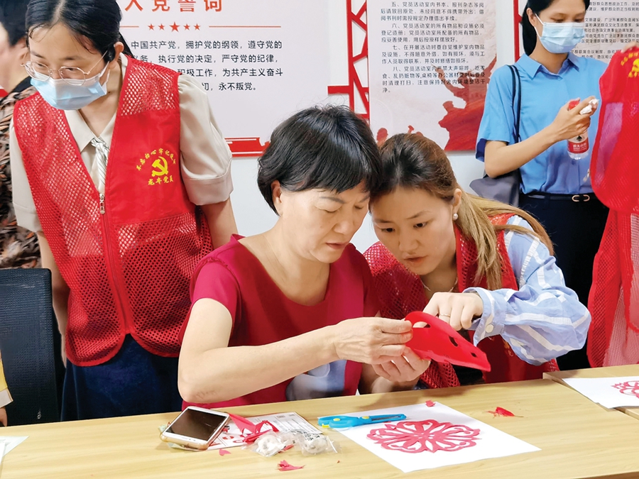 長者參加“巧手剪紙·樂享生活”志愿服務活動。