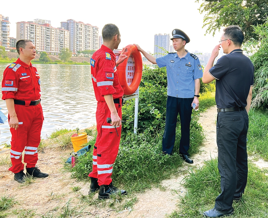 記者在東湖社區(qū)走訪發(fā)現(xiàn),市公安局情指中心黨支部的黨員民警與志愿者們一起走街串巷,深入社區(qū)群眾中派發(fā)宣傳單、開展宣教活動,為大家普及防詐反詐、防溺水知識,切實增強(qiáng)了居民們的安全防范意識。“在宣講活動中,有溺水情景模擬處置、急救教學(xué)等內(nèi)容,非常實用,也很有教育意義。”