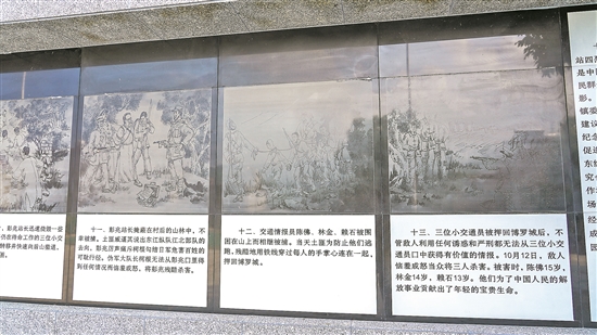 去年,新作塘還興建了以“八圍交通情報站紀(jì)念墻”為主題的紀(jì)念園,用連環(huán)畫的形式講述革命故事,畫面生動傳神,令人肅然起敬。