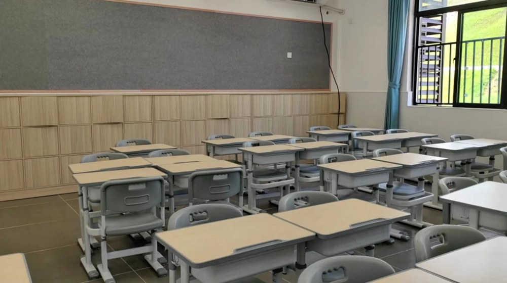 惠州學院附屬學校籌建辦成員王昕告訴記者,學校在小學部的課室設計上也花了許多心思,例如,安裝可以上下移動的黑板,便于不同身高的孩子都能舒適地在黑板上書寫。教室后面的墻貼毛氈板也賦予更多的使用功能,展示學生的優秀作文、手工作品等。