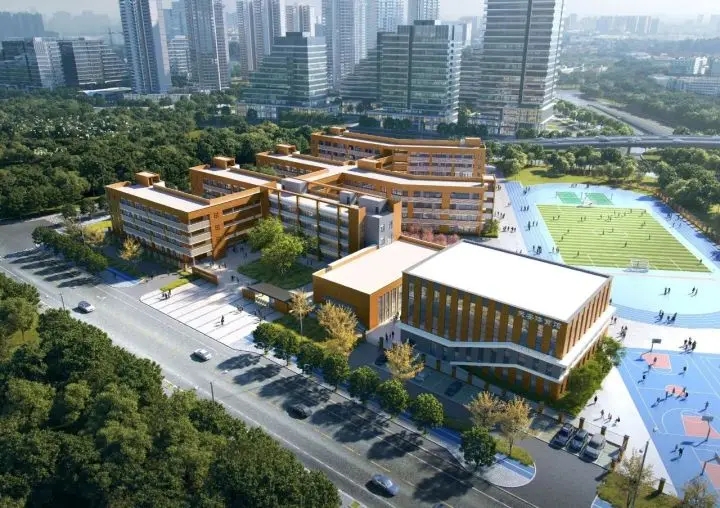 據(jù)記者了解,惠州一中附屬金山湖學(xué)校用地面積近5.4萬㎡,建筑面積超過2.4萬㎡。將打造高標(biāo)準(zhǔn)54班9年一貫制學(xué)校,小學(xué)36班,初中18班。校園配備2000㎡風(fēng)雨操場,包括首層游泳池、二層籃球場與羽毛球場。