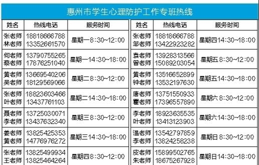 當感到心理壓力過大時,不要猶豫,去尋求專業(yè)的心理咨詢,專業(yè)人士可以提供有效的幫助和指導。惠州市學生心理防護工作專班有非常豐富的“心靈守護”資源,老師們也一直在大家的身邊,有需求可撥打值班老師電話。