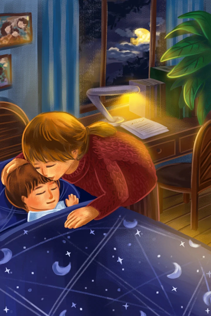 我摸著他的頭說:“爸爸永遠(yuǎn)都不會(huì)打你!