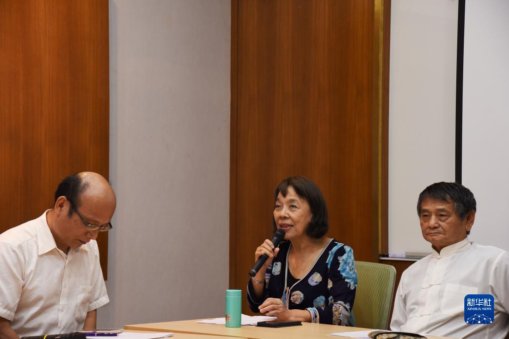 11月6日,臺灣知名作家、陽明大學(現陽明交通大學)退休教授張曉風(中)在“歷史教育新三自運動協會”記者會上發言。新華社記者 劉斐 攝