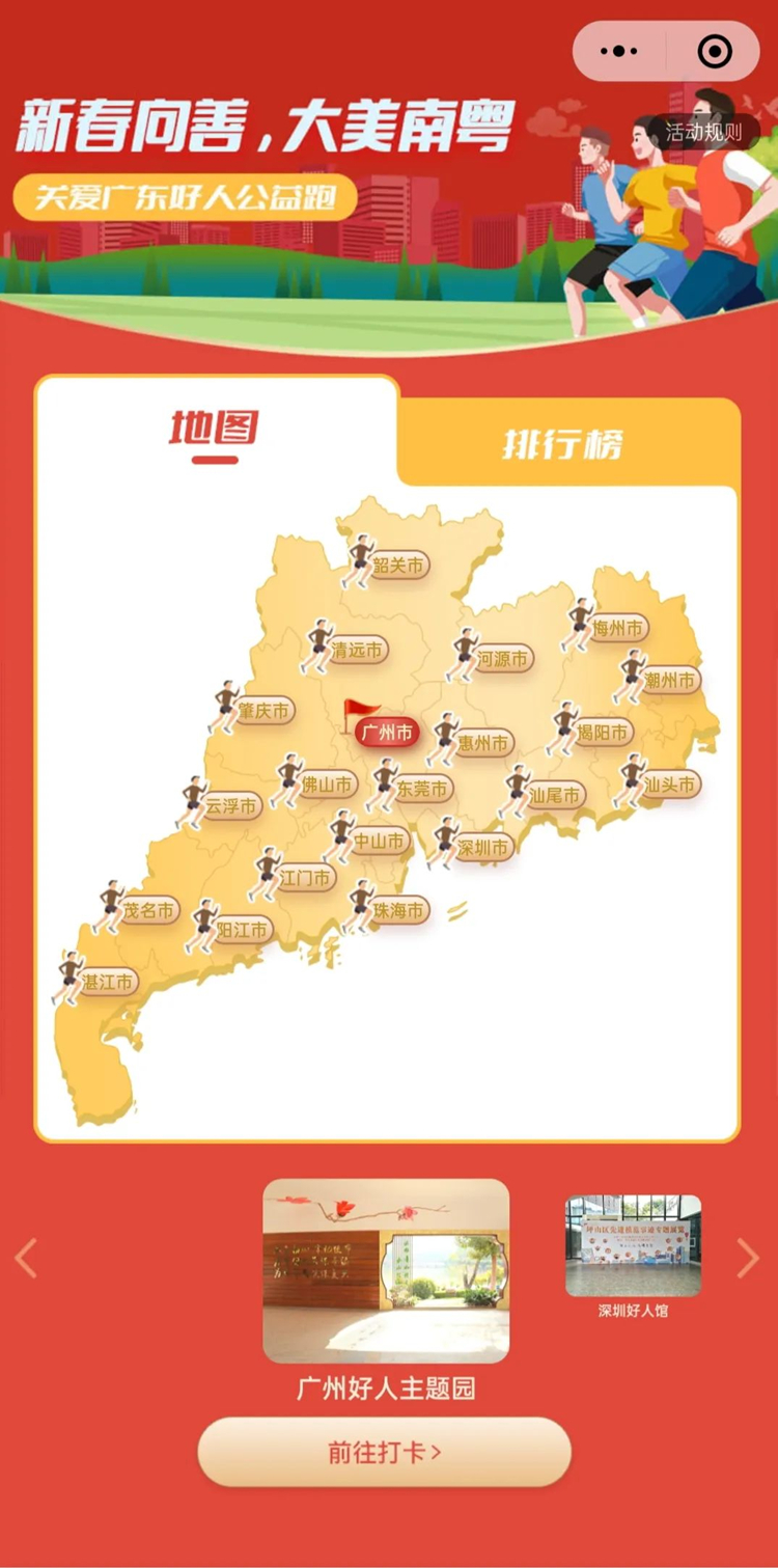 通過首頁地圖,點(diǎn)擊下方“前往打卡”進(jìn)入各地市好人館、好人長廊和好人公園等詳情頁,查看照片、簡介、地址等基本資料。