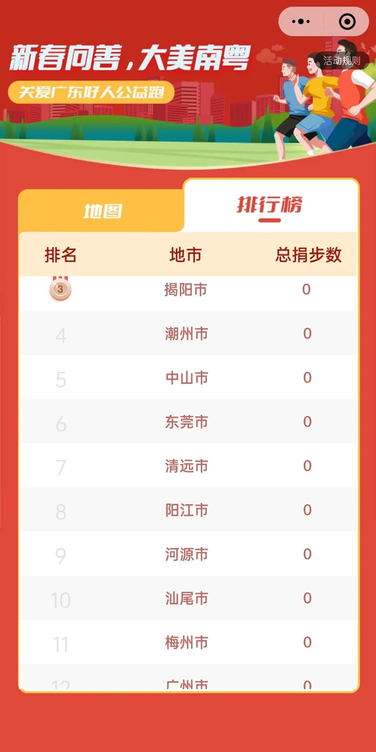 選擇“捐步打卡”可以捐出當(dāng)天微信運(yùn)動(dòng)步數(shù)(需打開“微信運(yùn)動(dòng)”功能),完成打卡后可獲得一次抽獎(jiǎng)機(jī)會(huì),在首頁“排行榜”可看到各地市累計(jì)捐步總數(shù)。
