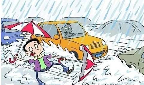 六,積水深要繞行,行人要注意道路上的下水道和井蓋,車輛要避免駛?cè)氲屯菀诐程帯?/p>