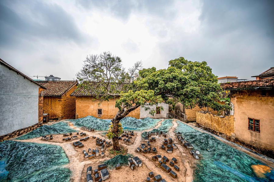 沿著縱隊路前進,穿梭于游擊巷間,看著成片低矮的青瓦泥磚屋與墻面上繪寫的“東江縱隊之歌”,濃郁的革命氣息撲面而來。這是位于東莞市大嶺山鎮大王嶺村的大嶺山抗日根據地舊址。廣東東江縱隊紀念館、大嶺山抗日根據地舊址講解員陳夢,在此向采訪團介紹廣東人民抗日游擊隊第三大隊開辟大嶺山抗日根據地的歷史。