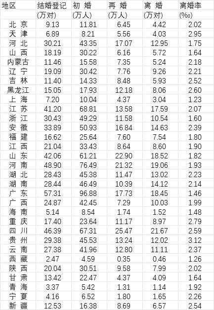 根據《中國統計年鑒2023》的數據,去年我國結婚總人數最多的是廣東省,達到了57.31萬對,也是唯一一個結婚總人數超過50萬對的省份:河南位居第二,為48.9萬對;四川位居第三,為46.39萬對。