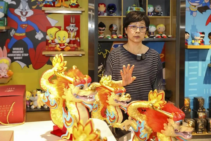 公司總經理李琳表示,“純毛絨的‘吉祥龍’打樣出來之后,我們發現僅龍頭就有近100件裁片,一個熟練工人一天都未必能制作出一個,所以我們提議采用時下潮玩最常見的概念就是‘PVC+毛絨’,最后制作出的‘吉祥龍’龍頭更加逼真,也得到文化和旅游部及中央美院設計師的贊許!