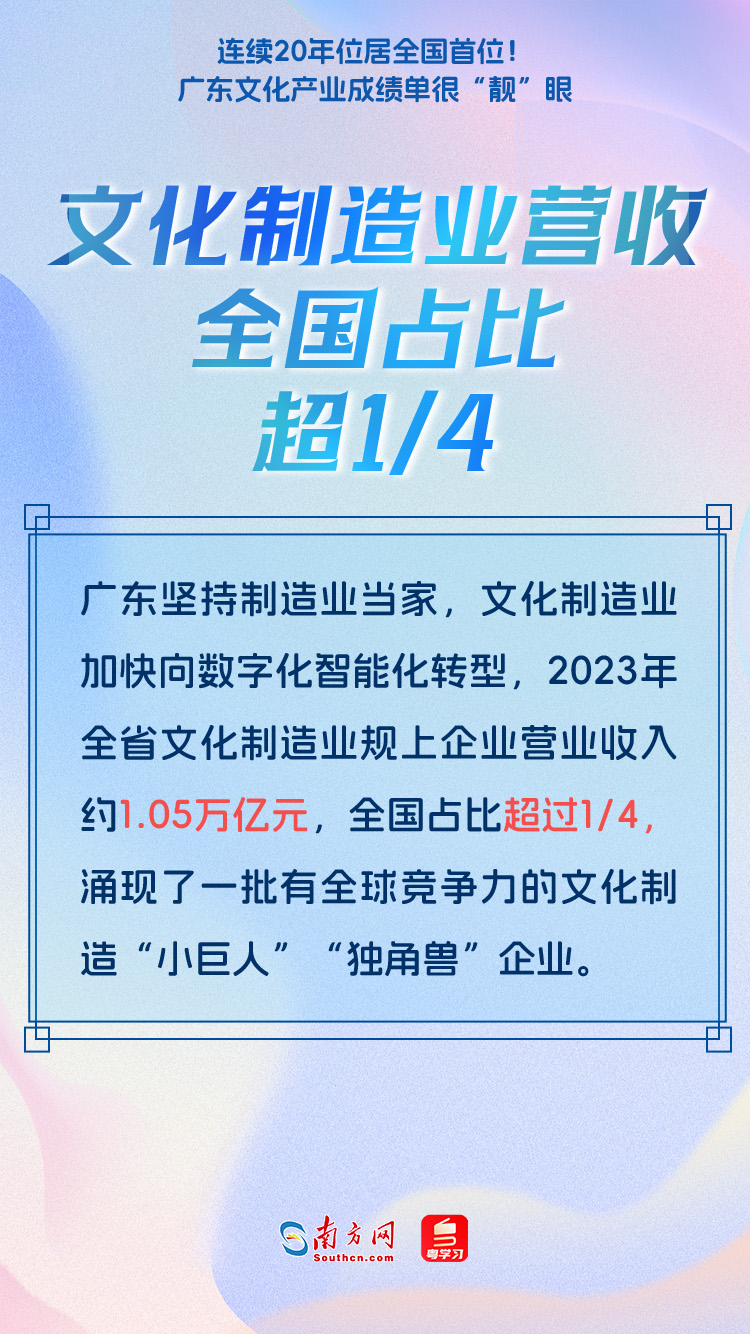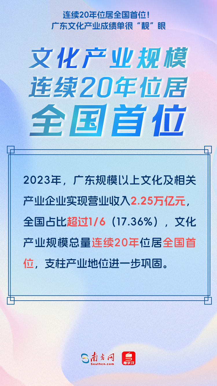 第二十屆中國(深圳)國際文化產業博覽交易會(以下簡稱“文博會”)將于5月23日至27日舉行。近年來,廣東文化產業取得一系列新進展新成效,在本屆文博會上,廣東展團將以“勇立潮頭,推動文化產業高質量發展走在前列”為主題亮相“粵港澳大灣區文化產業創新展”,曬出廣東文化產業“成績單”。這份成績單到底有多“靚”?一起來了解↓↓↓