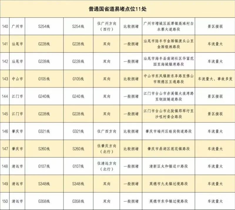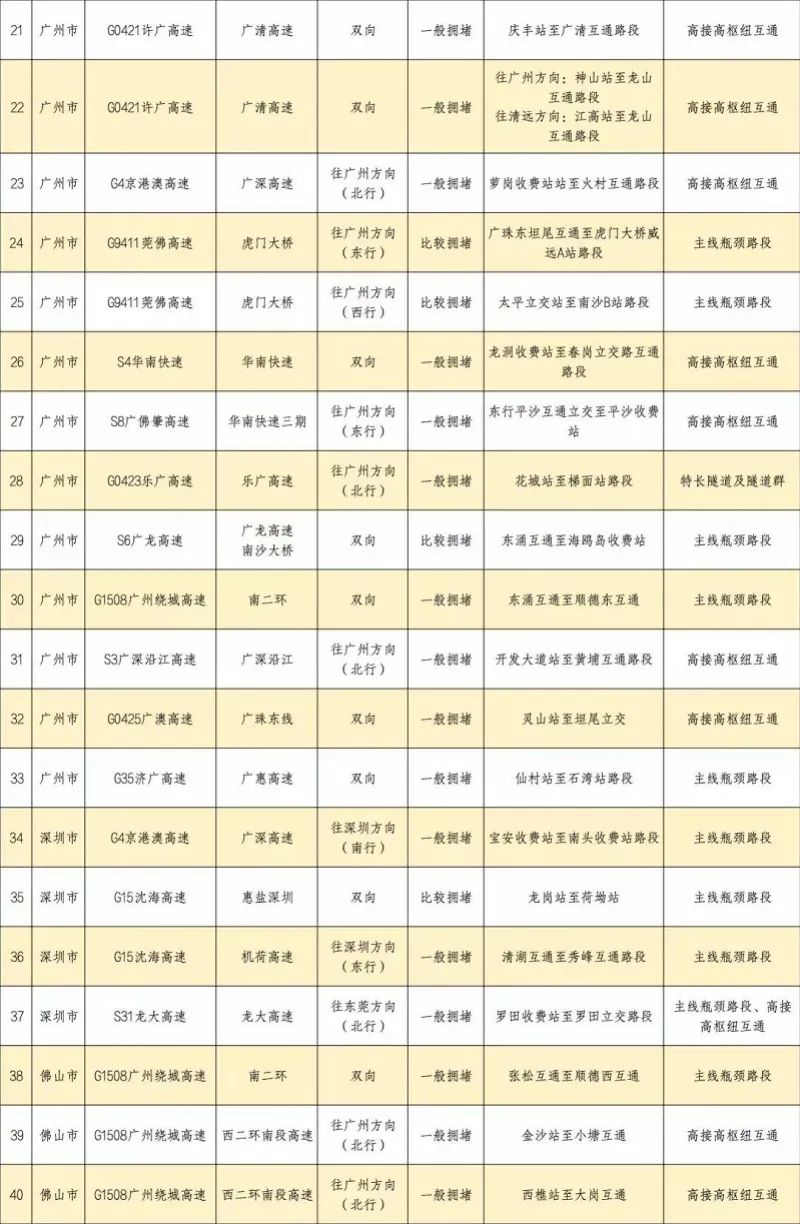 在公布的全省高速公路139處易堵點位中(含收費站兩處、服務區7處),惠州有15處一般易堵點,主要擁堵原因是,高速接高速的樞紐互通、主線瓶頸路段、隧道以及隧道群等。惠州涉及到的高速包括長深高速、武深高速、惠大高速、廣惠高速等。