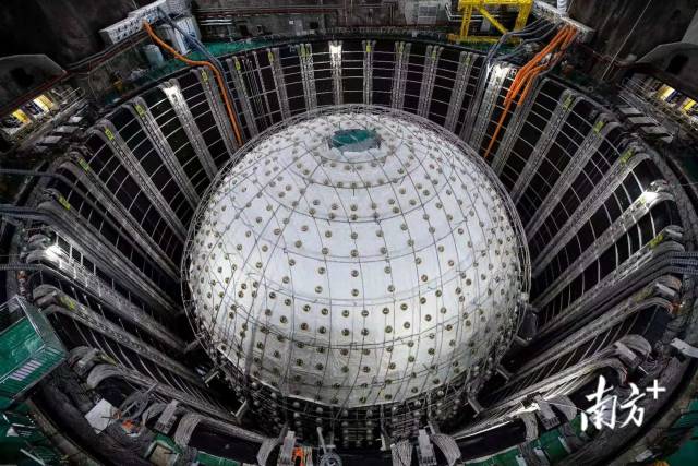 正在引入有機玻璃球,將用于盛裝捕捉中微子用的神秘液體“液閃”。