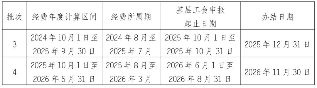按照新的政策時限,對《關于實施小額繳費工會組織工會經費全額返還支持政策的通知》中的第3批次進行調整,并新增第4批次,具體如下: